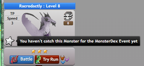 Now it will display with a white/gray star whether you have caught or not that Monster in a wild Monster battle previously for the MonsterDex Event