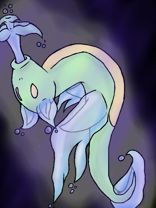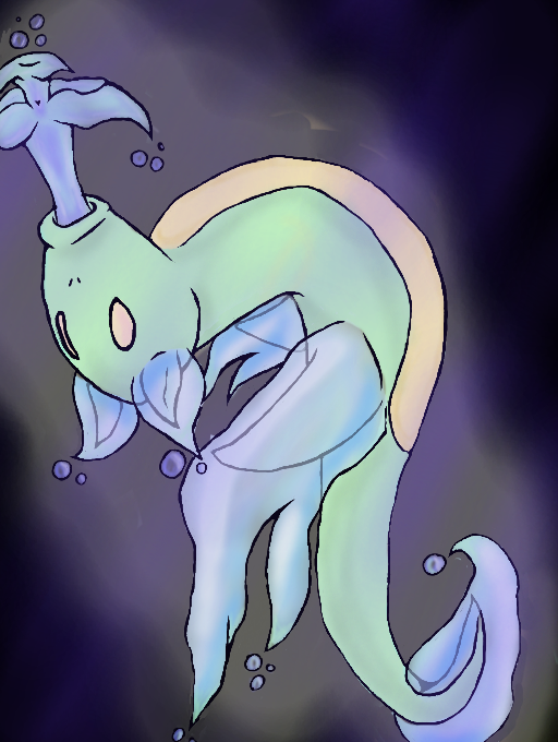 Squirtpent is a really cool, creative design. The indigo highlights in the water give it a sort of depth or something. Your lineart and shading aren't nearly as good as Tadpool's (because Tadpool's was amazing), possibly because the screen wasn't quite big enough. It makes up for this with an interesting background and the overall uniqueness of the design.