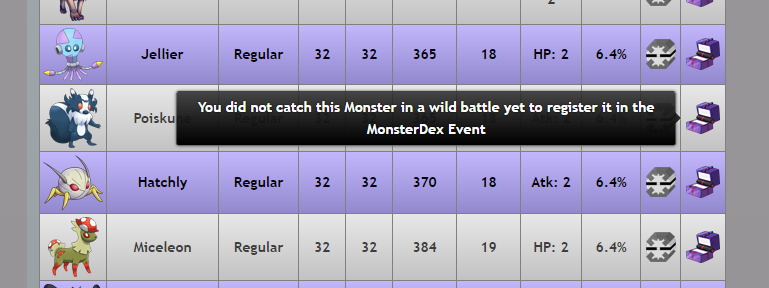7) MonsterDex page of Monster will now show whether you have captured that Monster in a wild battle before or not for the MonsterDex complete event