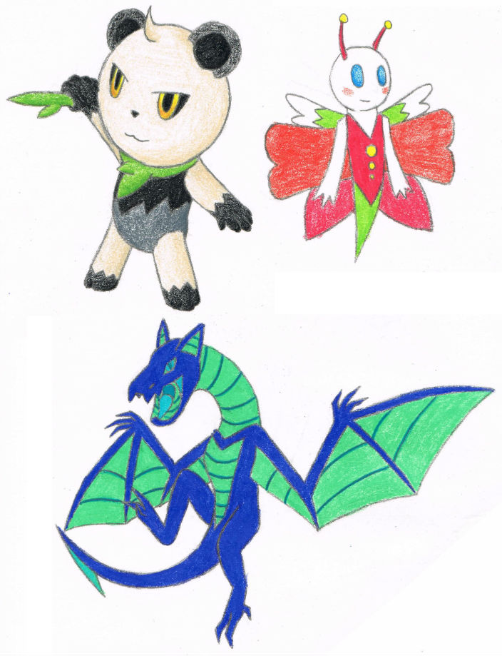 Here they are, my (hopefully game-saving) redesigns of Panleaf, Flowfairi, and Sounvern!